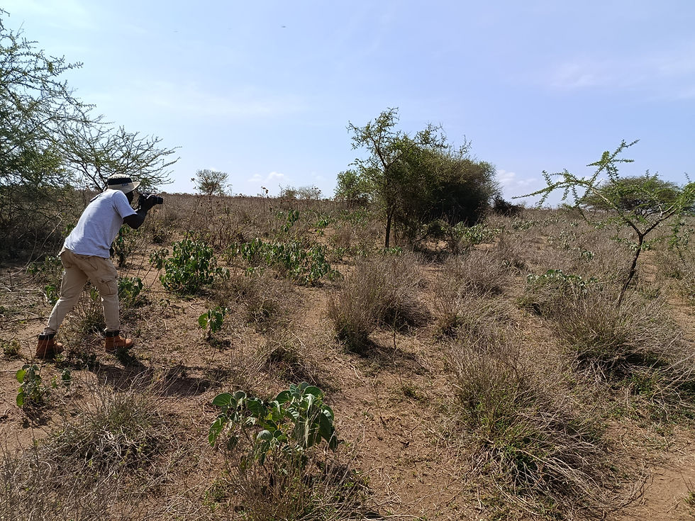 Après le petit-déjeuner, départ en 4x4 pour le bush afin d’installer les caméras pièges (camera traps). Ces dispositifs permettent de surveiller et suivre les déplacements de la faune, et les données collectées servent à atténuer et prévenir les attaques sur le bétail, réduisant ainsi le conflit homme-animal.